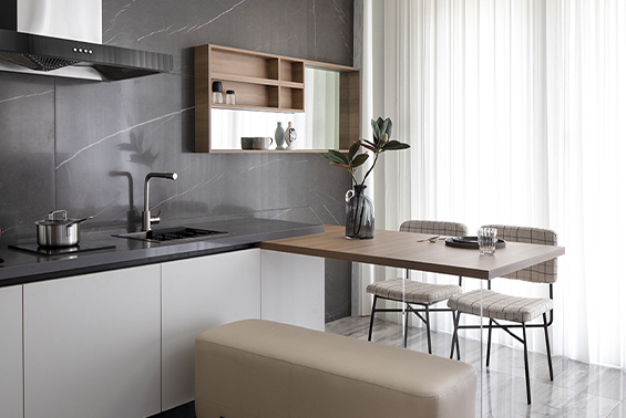 项目中庭园林景观是本项目的亮点之一,拥有版纳首造无边际透明玻璃网红泳池,它采用几何元素设计,多个图形拼接,充满设计感和现代感。整体分为 4 层打造,网红打卡点和欢乐滑梯,浅水区,深水区和镜面水镜。并且设有水中躺椅,下沉式水中庭院,在运动之后可以小憩,喝上一杯冰镇果汁,尽情享受阳光和美景,拥有独一无二的游泳感受。中庭还打造了艺术草阶,雅致汀步,植物组团,主题雕塑等景观小品。小区还设有五星级餐厅,全龄活动厅,健身厅,24 小时生活管理室等着众多生活配套。