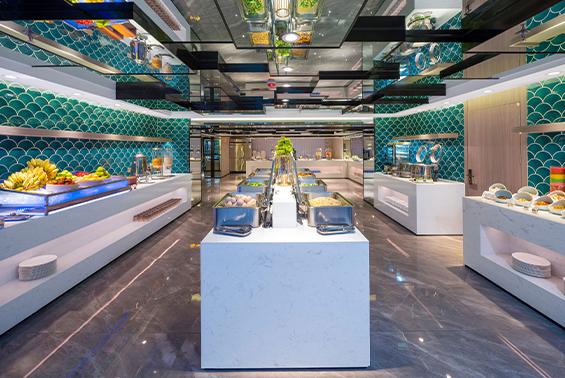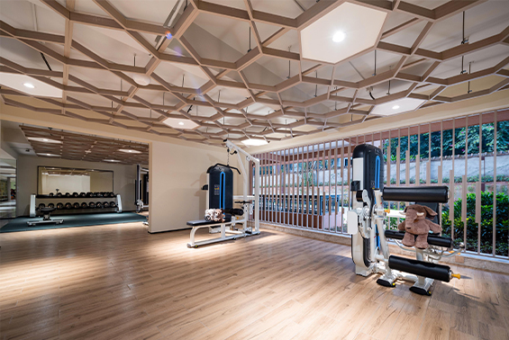 项目中庭园林景观是本项目的亮点之一,拥有版纳首造无边际透明玻璃网红泳池,它采用几何元素设计,多个图形拼接,充满设计感和现代感。整体分为 4 层打造,网红打卡点和欢乐滑梯,浅水区,深水区和镜面水镜。并且设有水中躺椅,下沉式水中庭院,在运动之后可以小憩,喝上一杯冰镇果汁,尽情享受阳光和美景,拥有独一无二的游泳感受。中庭还打造了艺术草阶,雅致汀步,植物组团,主题雕塑等景观小品。小区还设有五星级餐厅,全龄活动厅,健身厅,24 小时生活管理室等着众多生活配套。