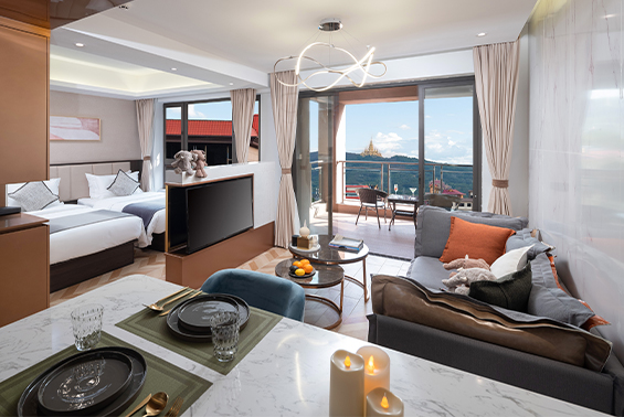 版纳精英汇引入两家星级酒店——温德姆蔚景酒店、复星旅文爱必侬酒店,同时以享誉国际的曼谷Elio Del Ray 和 Mori Haus 酒店式公寓,以及三亚亚特兰蒂斯度假酒店为蓝本,打造版纳唯一度假酒店式园林。将版纳山水融于内部景观,层层热带植被交相掩映,宛若身处原生雨林,抬眼美好,闭眼氧人。
